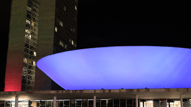 O Congresso Nacional recebe iluminação nas cores azul e roxa, neste sábado (28) e domingo (1º), em alusão ao Dia Mundial das Doenças Raras. Instituída pela Organização Europeia de Doenças Raras (Eurordis), a data visa disseminar conhecimento sobre essas enfermidades, buscar apoio para pacientes e incentivar pesquisas de tratamento.