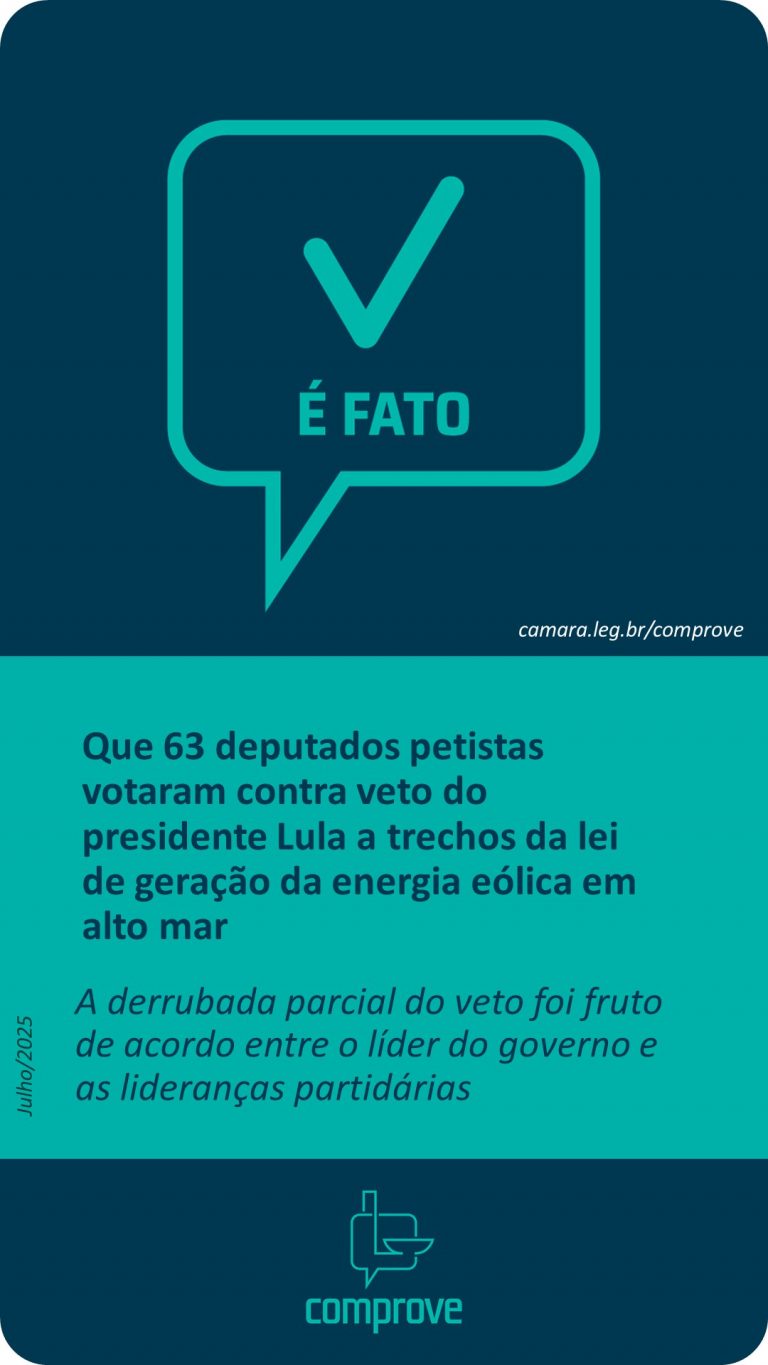 É fato que 63 deputados petistas votaram contra veto do presidente Lula a trechos da lei de geração da energia eólica em alto mar