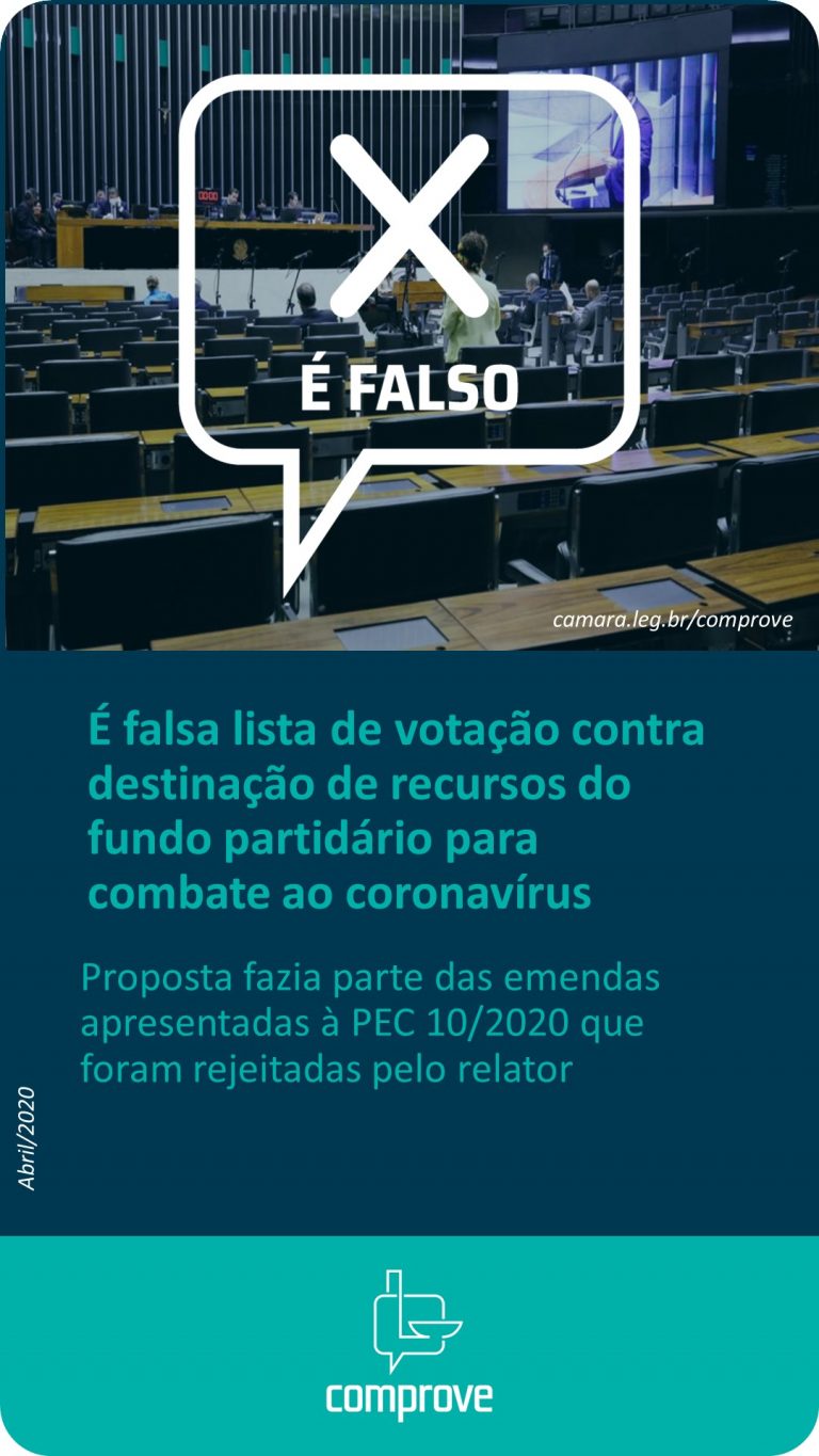 É falsa lista de votação contra destinação de recursos do fundo partidário para combate ao coronavírus