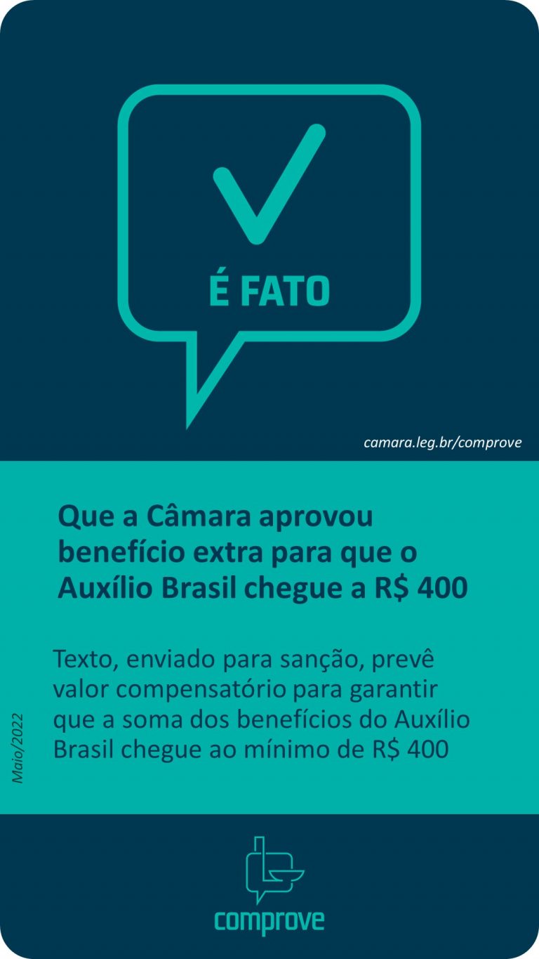 É fato que a Câmara aprovou benefício extra para que Auxílio Brasil chegue a R$ 400 por família