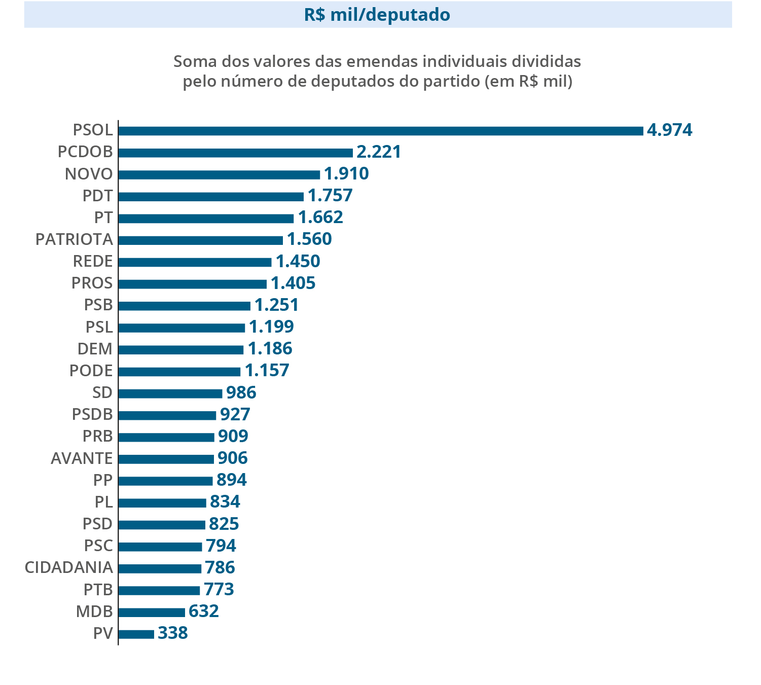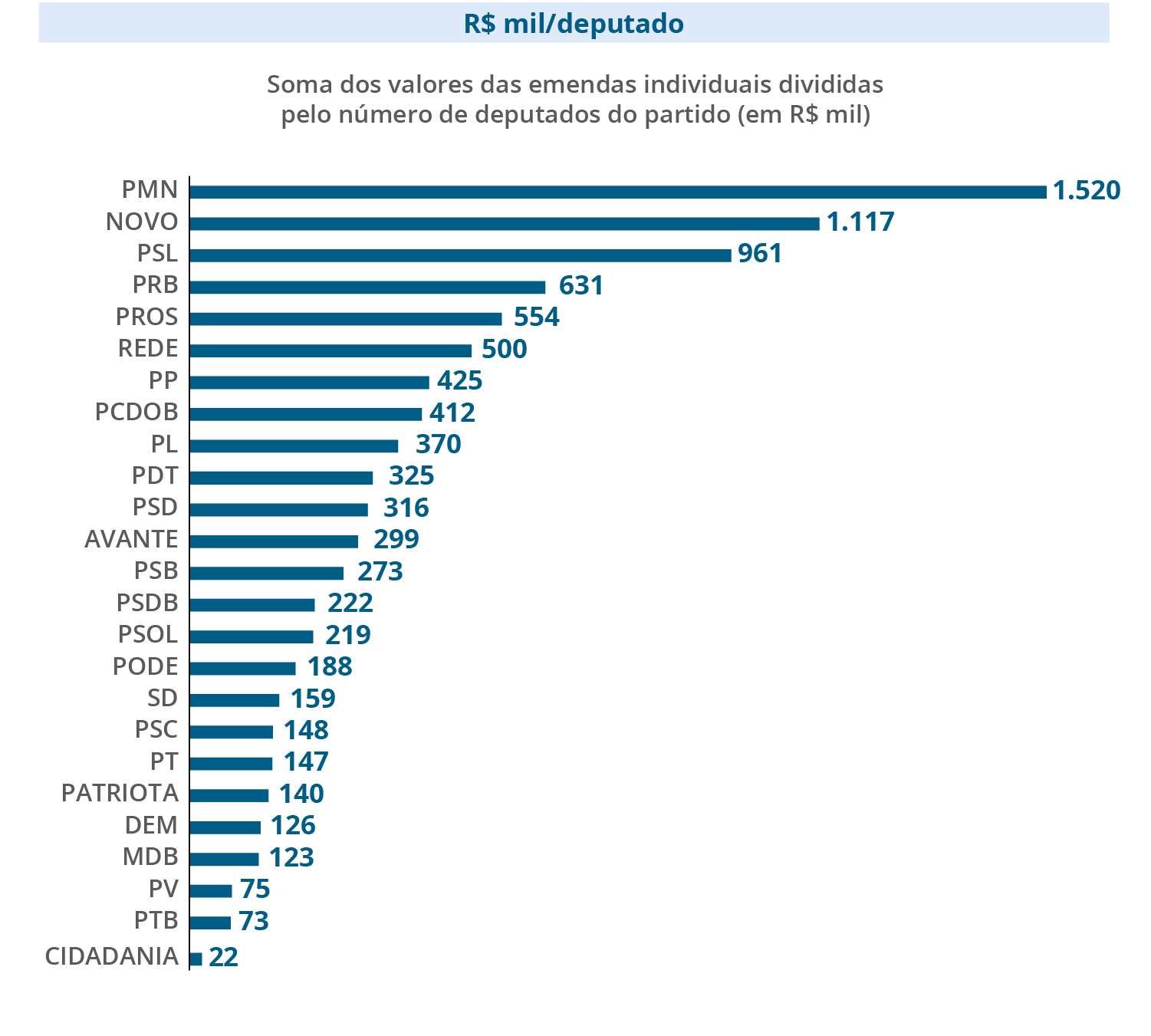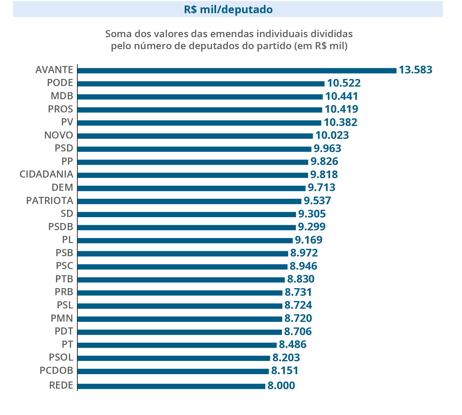 Ao todo, os deputados apresentaram 7.769 emendas ao projeto de lei orçamentária, somando R$ 8,17 bilhões. Cada parlamentar pode apresentar até 25 emendas, com valor total de R$ 15,9 milhões. Obrigatoriamente, metade deve ser destinada para ações e serviços públicos de saúde.
