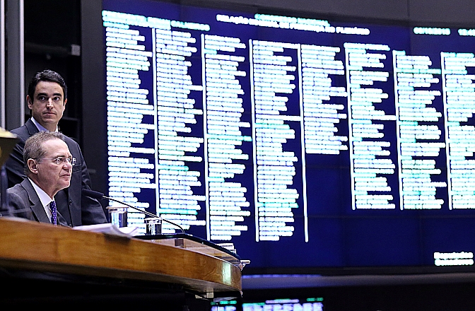 Mais informações Sessão extraordinária para discussão e votação de diversos projetos. Presidente do Congresso, sen. Renan Calheiros (PMDB-AL)