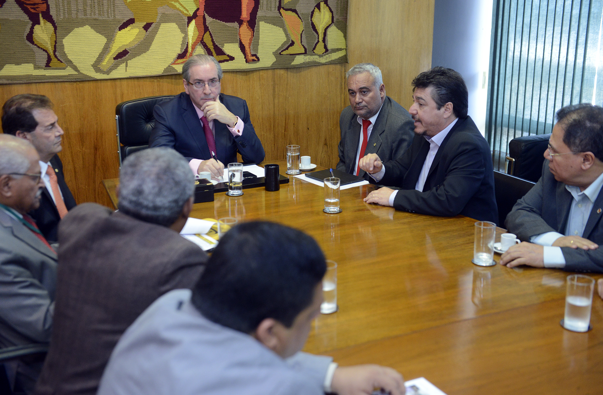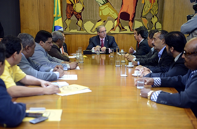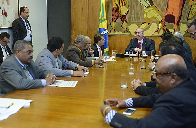 Mais informações Presidente da Câmara, dep. Eduardo Cunha (PMDB-RJ) recebe o dep. Paulo Pereira da Silva (SD-SP) e representantes sindicais