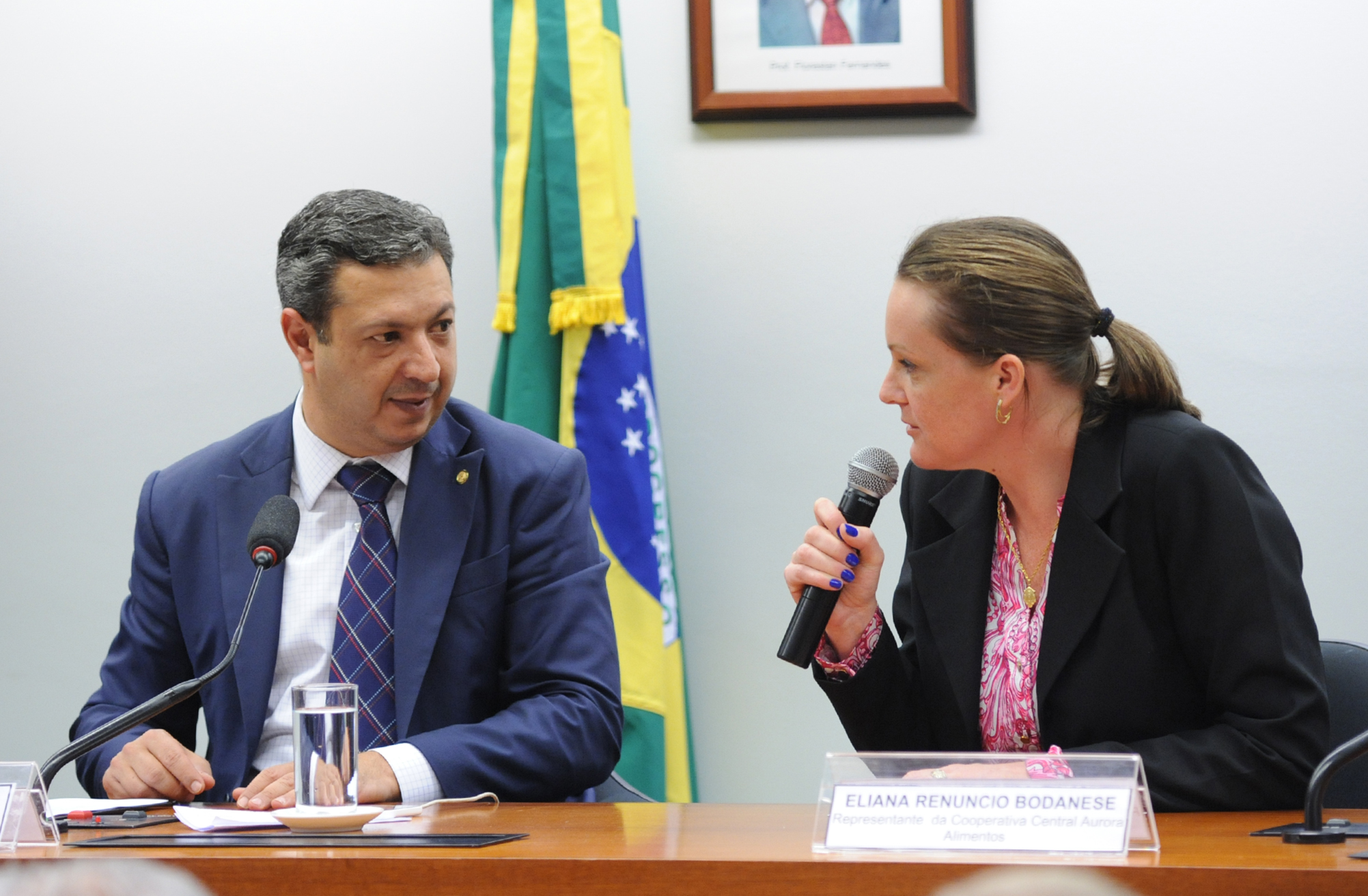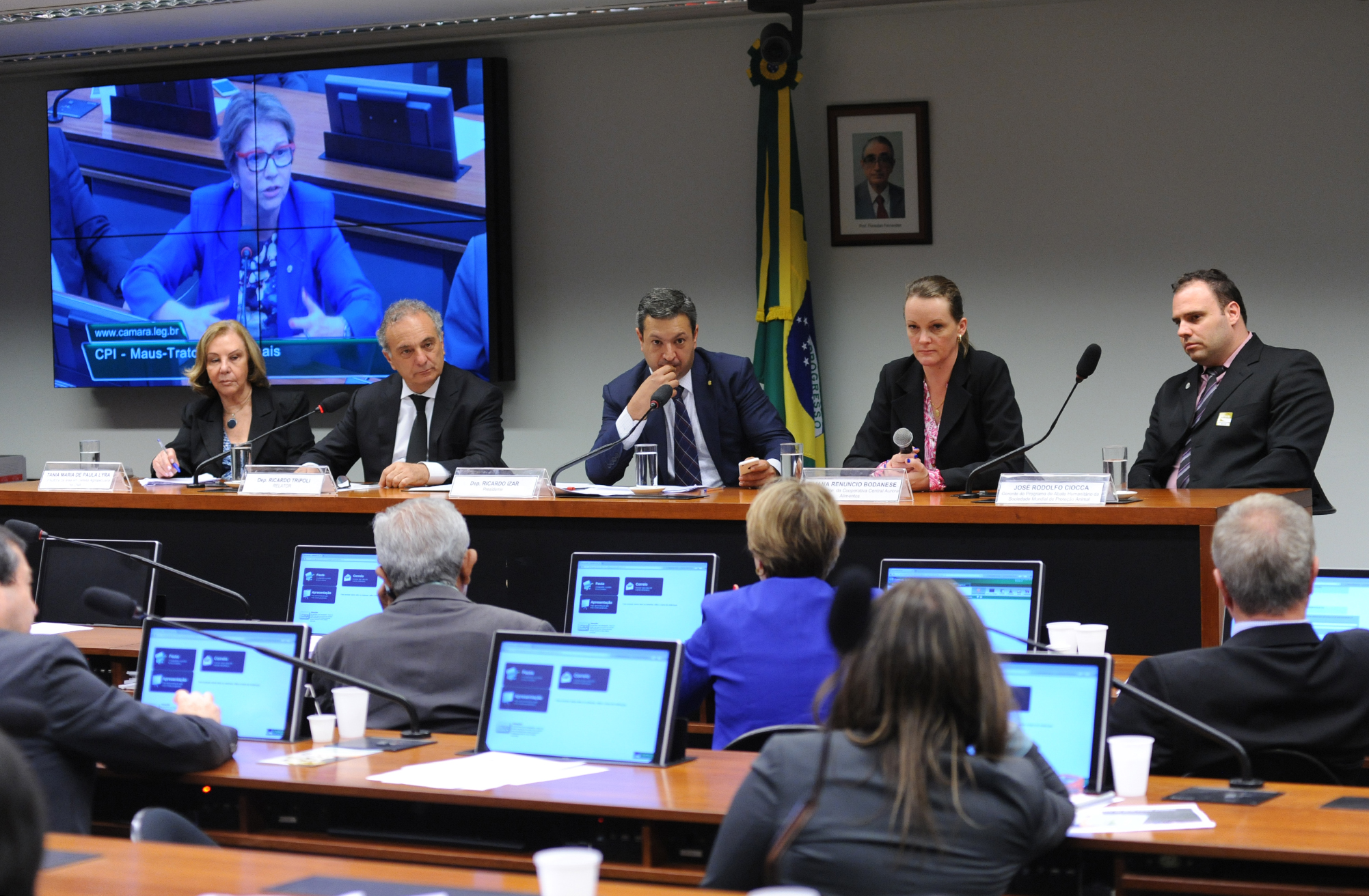 Mais informações Audiência pública para esclarecer sobre a criação, manejo, transporte e abate de animais para consumo, e políticas públicas de bem-estar animal no setor produtivo. Presidente da CPI, dep. Ricardo Izar (PSD-SP) e representante da Cooperativa Central Aurora Alimentos, Eliana Renuncio Bodanese
