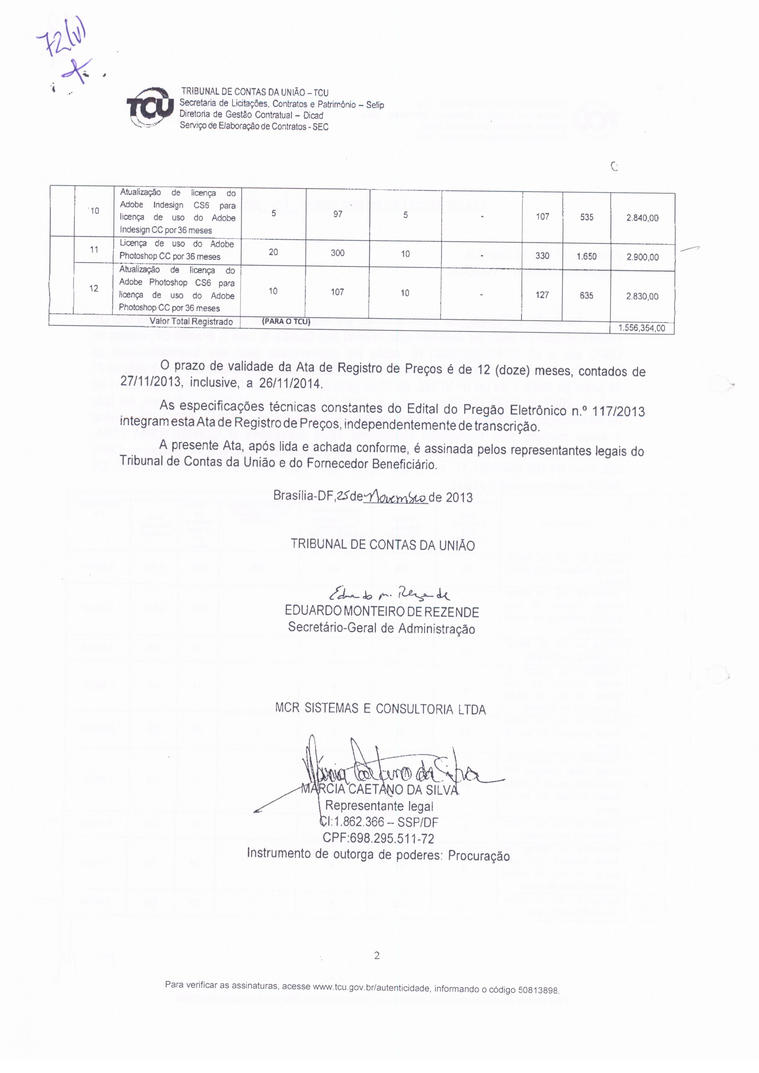 | Item: 2 | Descrição: ADOBE INDESIGN CS6 | Quantidade: 97 (LICENÇA) | Valor Unitário: R$ 2.840,00 | Valor do item: R$ 275.480,00 |