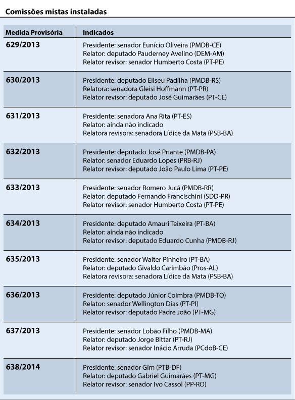 O Congresso Nacional instalou nesta quarta-feira as comissões mistas que vão analisar dez medidas provisórias (MPs) editadas pelo governo no final de 2013 ou início de 2014, depois que a Câmara dos Deputados e o Senado já haviam entrado em recesso.